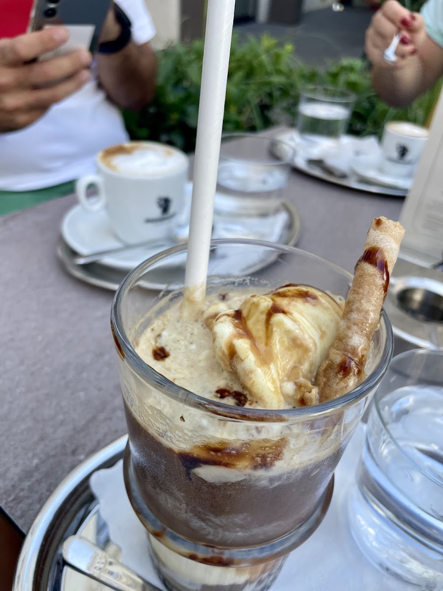 After eating far too much (we should have split the schnitzel at figlmuller), we wandered around the immediate area and found ourselves wanting to have a seat outdoors and have a latte. The coffee was delicious, and Renzo himself was present, and took the time to discuss our mutual love of coffee and the preparation of a wonderful latte. The dessert did not disappoint, and the hospitality extended by the owner provides a great memory for my wife and I to bring home to Canada. Thank you Renzo!